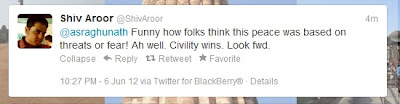 There are stray incidents of abusive language being employed by a few, blocking is normal. Irreverent Tweets are also a norm, rumors by media, as also misinformation is tried to be inflicted on us, such Tweets are duly deleted with promptness that the mischief does not return to haunt the perpetrator, by way of retweet or be used as evidence to confront the culprit. Tech savvy Tweeple ensure that such tweets are instantly captured and re-posted to the dismay and discomfort of these individuals who tried to be cute on this forum. There is a recent instance of a journo from Economic Times going overboard and posting hateful tweets, cruelly attempting to later justify them as a joke, we did not detect any humor what so ever in those tweets, will leave it to you readers to reach your own independent conclusion. However this was picked up and a blog was posted.